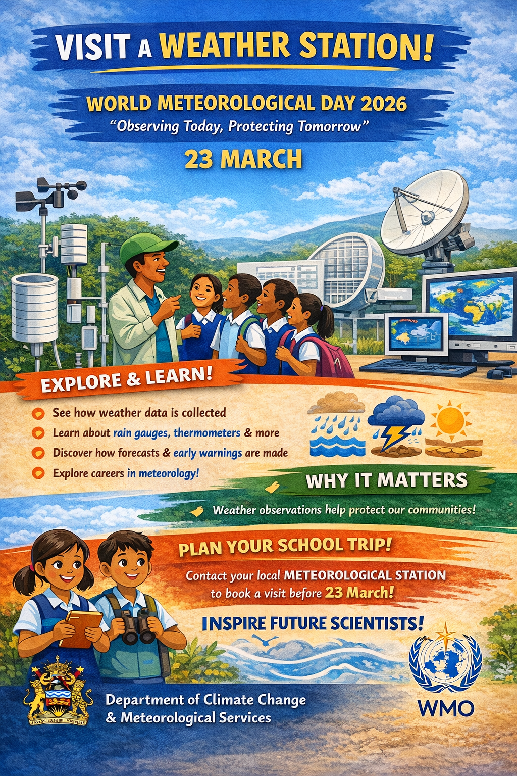 This year’s World Meteorological Day focuses on the critical role that weather and climate observations play in the Early Warning value chain. Under the theme “Observing Today, Protecting Tomorrow,” the celebration highlights how accurate and continuous observations of the atmosphere, oceans, and land form the foundation for reliable weather forecasts, climate monitoring, and disaster early warning systems.